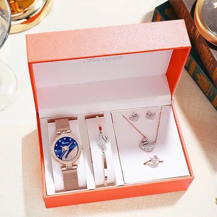 GiftSetX.com — идеальное место, где можно найти роскошный подарочный набор ювелирных часов для особенной женщины в вашей жизни. Этот прекрасно созданный набор включает в себя потрясающие часы и соответствующие ювелирные украшения, которые дополнят любой наряд и придадут нотку элегантности любому случаю. Этот подарочный набор, изготовленный из высококачественных материалов, демонстрирует изысканное мастерство и внимание к деталям.